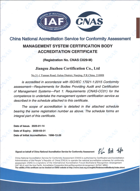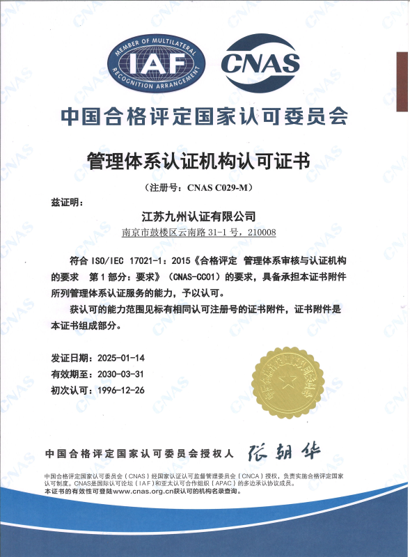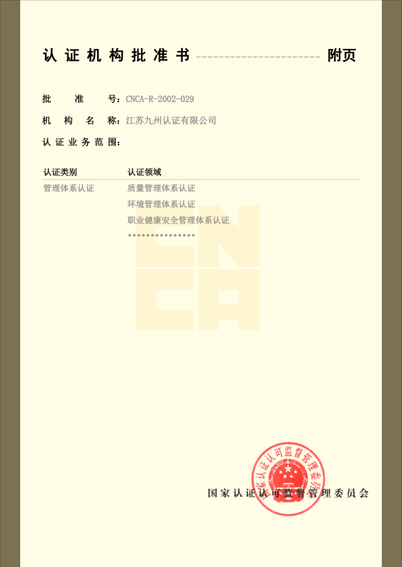 • 管理體系認(rèn)可證書-中文