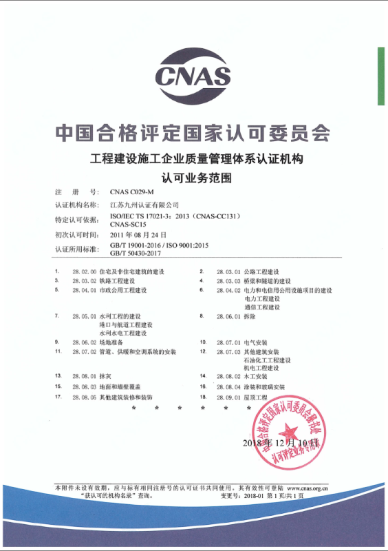 • 工程建設(shè)施工企業(yè)管理體系認(rèn)可業(yè)務(wù)范圍-中文