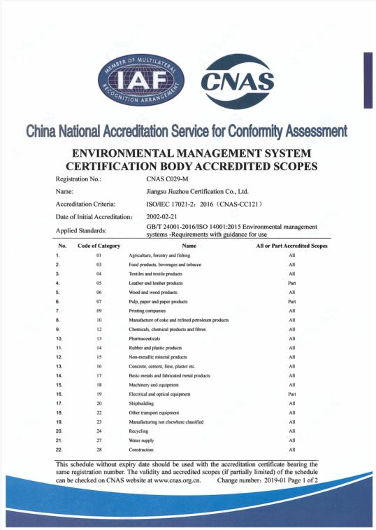 • 環(huán)境管理體系認(rèn)可業(yè)務(wù)范圍-中文1