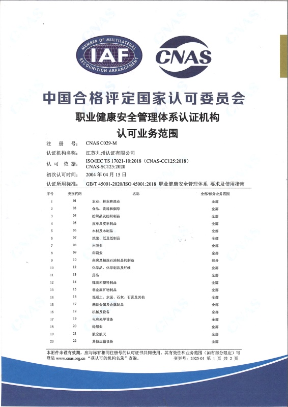 • 職業(yè)健康安全管理體系認(rèn)可業(yè)務(wù)范圍-中文2